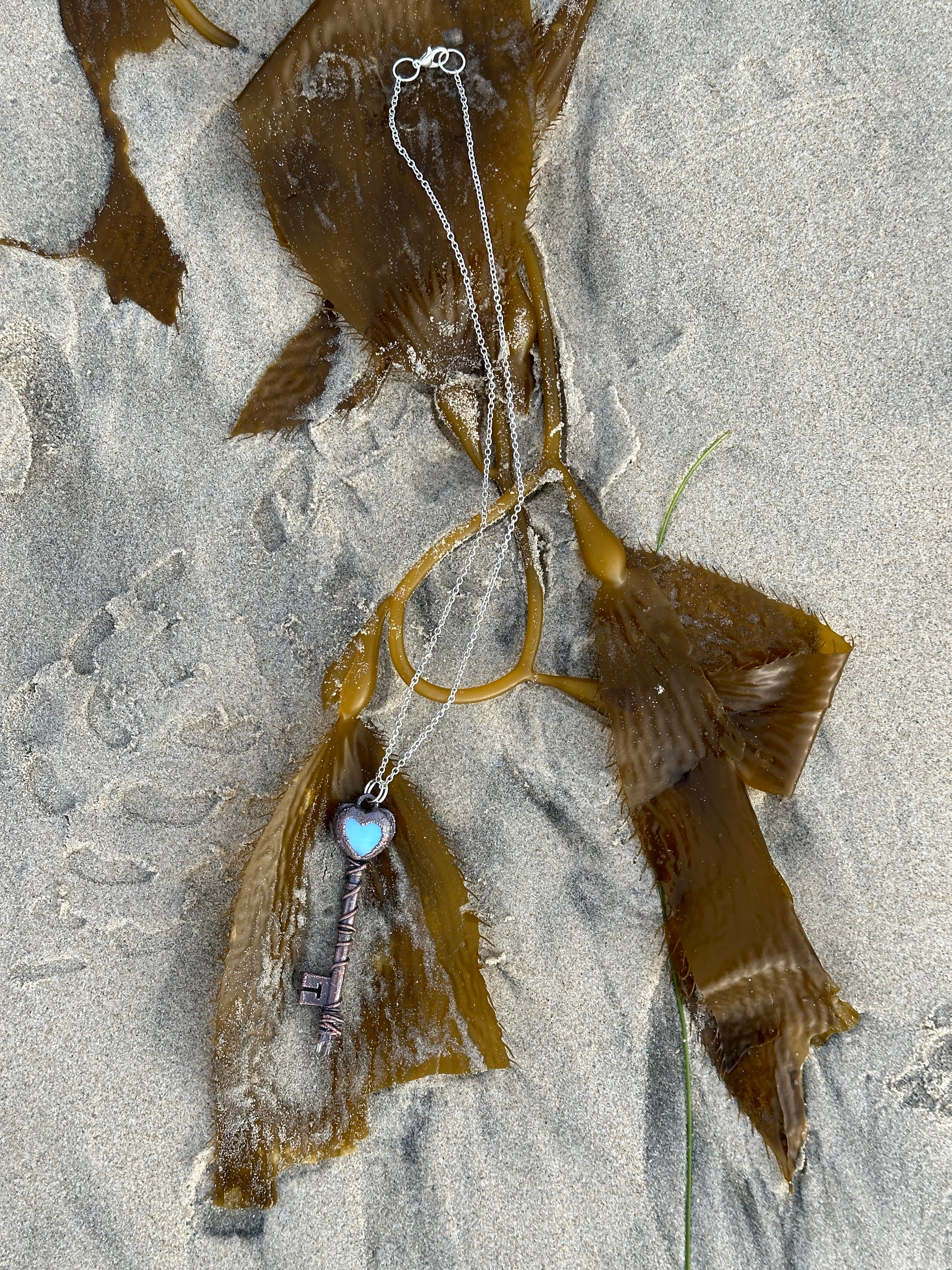 C. Heart Key | Opalite and Quartz | Dark Copper